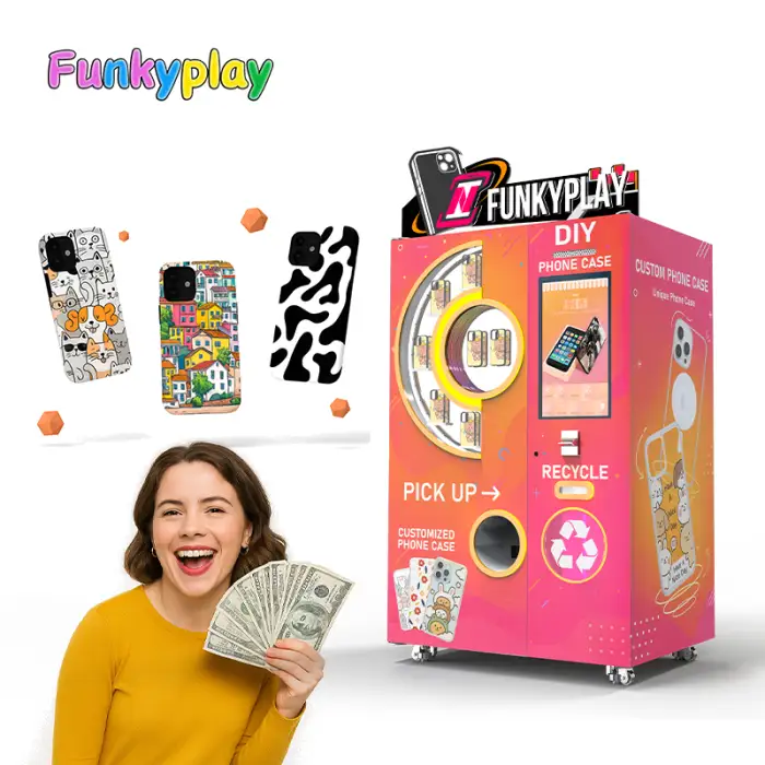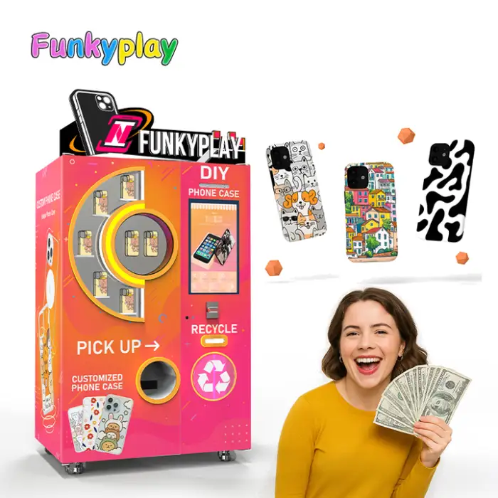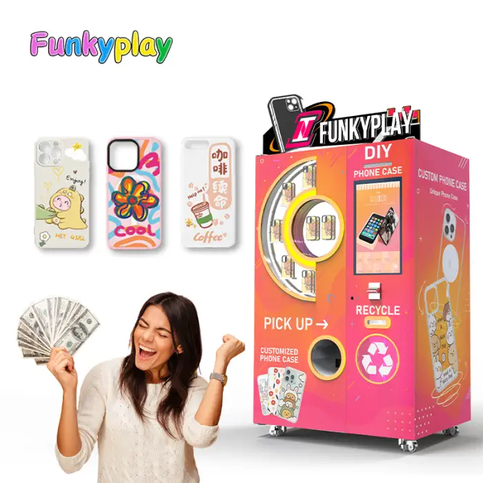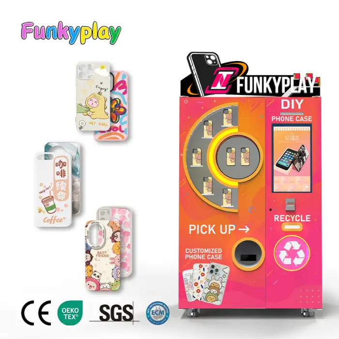 The kiosk features an easy-to-use touchscreen interface that guides you through the process of designing and printing your custom phone case in just a few simple steps.