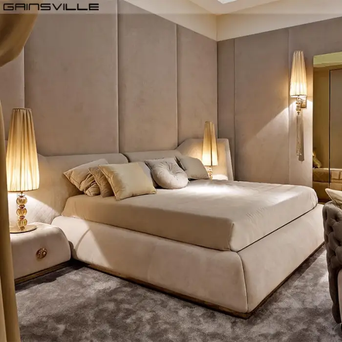 This bed set is perfect for master bedrooms, upscale apartments, and villas looking for elegant furniture.