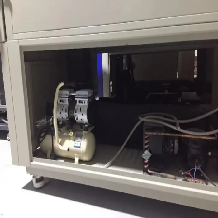 Yes, the chamber uses an oil-free air compressor to ensure clean testing conditions.