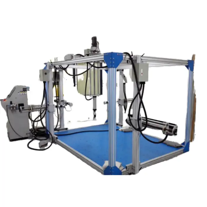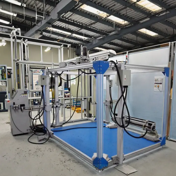 This machine assists in quality control by accurately testing the strength and durability of furniture during the production process.