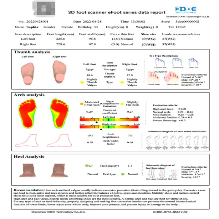 Key features include customized support for individual foot shapes, quick and accurate foot scanning, support for various output formats, and options for OEM and ODM solutions.