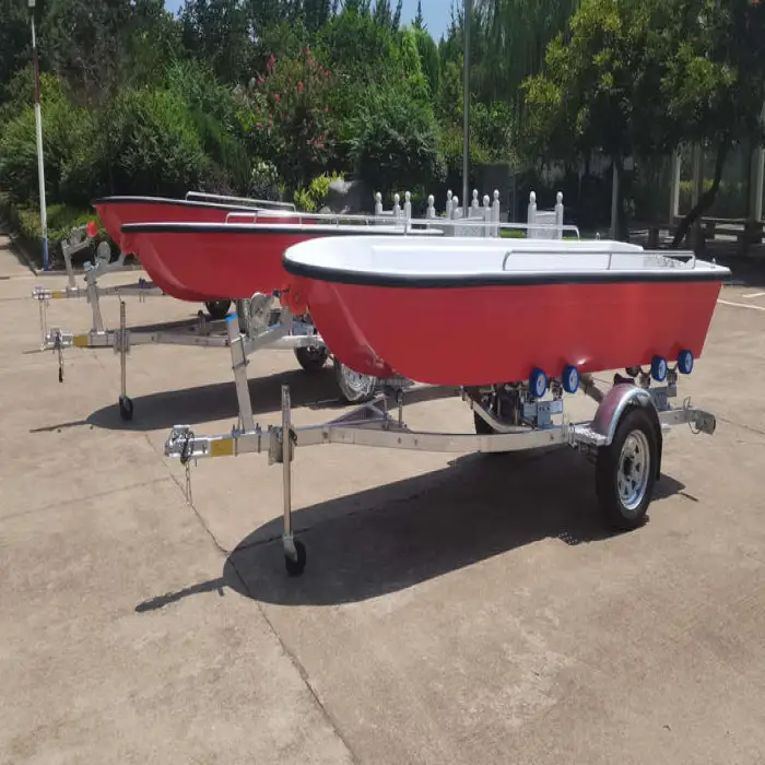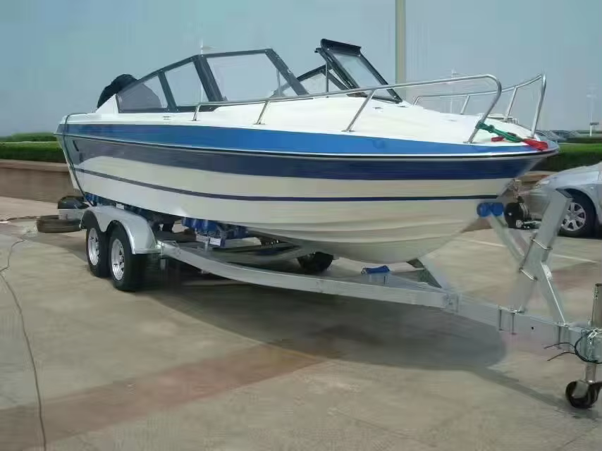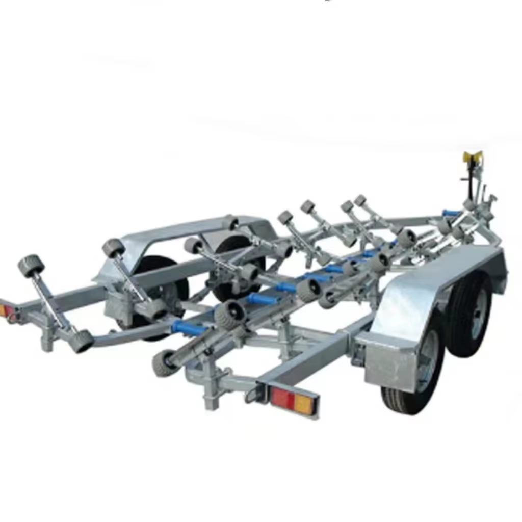 The boat trailer is constructed from high-quality galvanized stainless steel, ensuring durability and resistance to corrosion.
