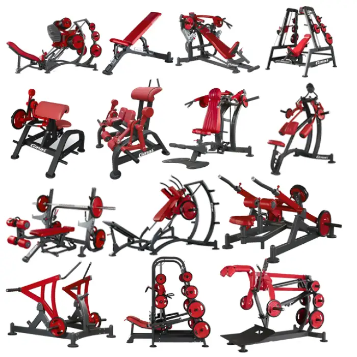 The GANAS Professional Gym Equipment Complete Gym Set includes a variety of high-quality gym machines and apparatus designed for bodybuilding and fitness, suitable for commercial use.