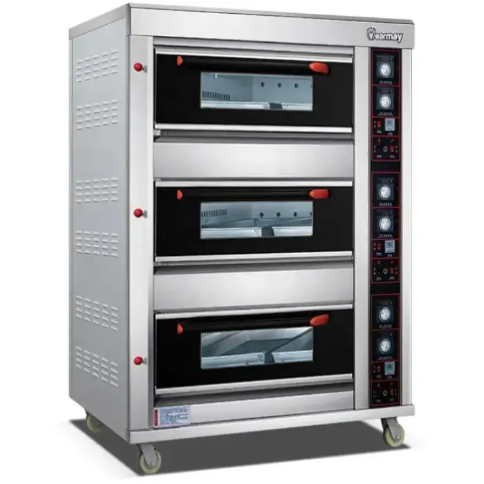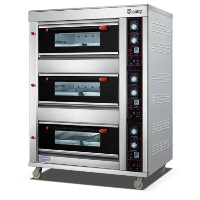 The Yearmay Gas Bread Oven has a capacity of 3 decks and can accommodate up to 6 trays for baking large quantities of bread, cakes, and pastries.