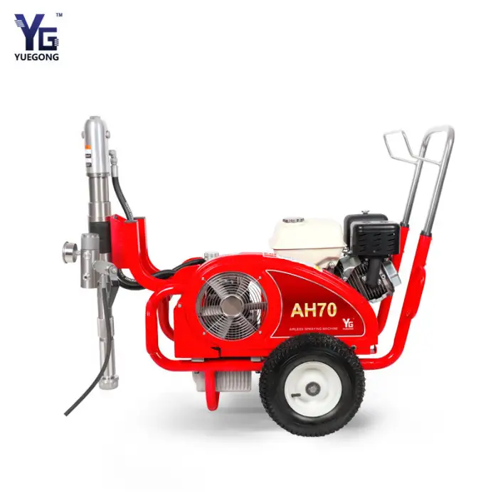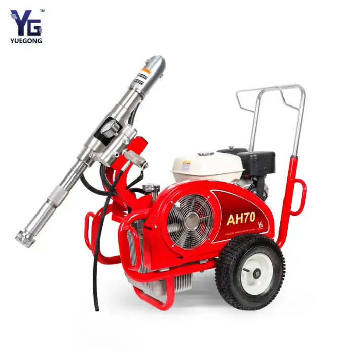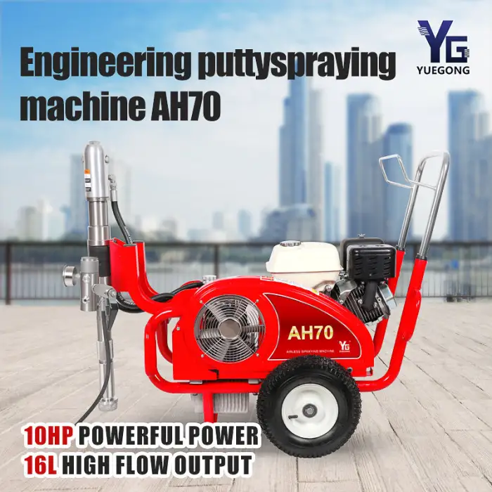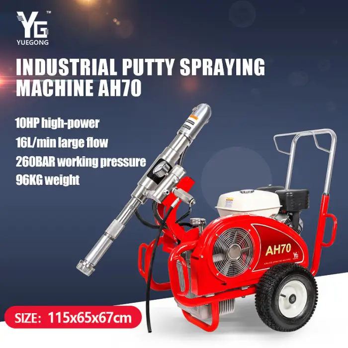 This spray machine can be used for spraying wall putty, applying waterproof coatings, heavy anti-corrosion applications, fireproofing surfaces, and efficiently spraying gypsum and gelcoat materials.
