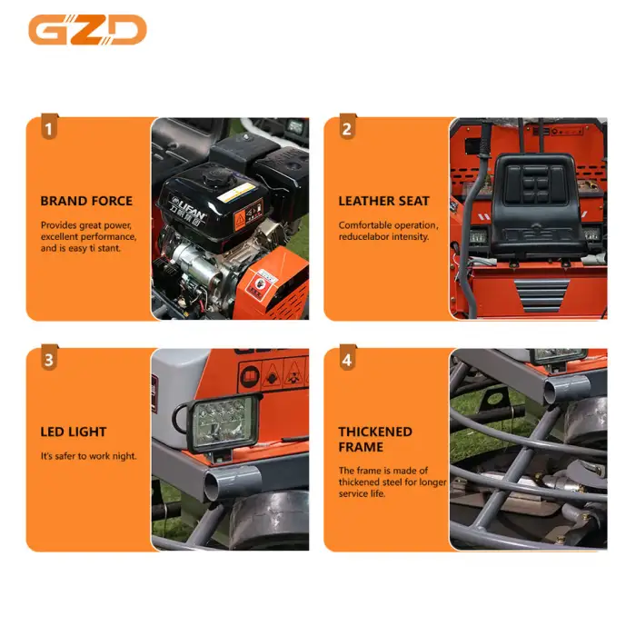 The Gasoline Engine 30 Inch Horizontal Ride on Concrete Power Trowel Machine is equipped with a powerful 13hp gasoline engine, available from brands like Lifan, Bailitong, or Honda.