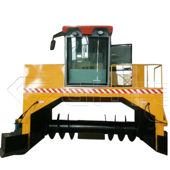 The compost turner is built with durable components designed for long-term operation, including a PLC-controlled system for reliability.