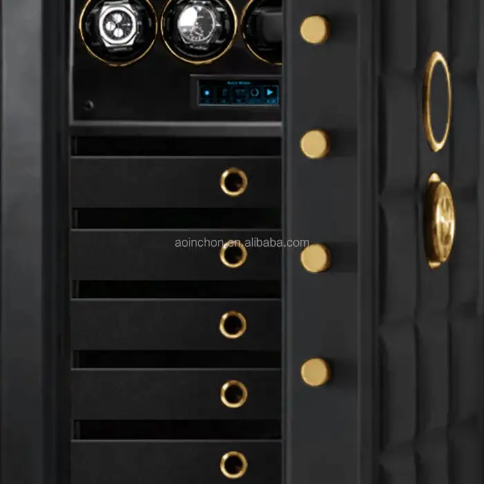 The Genuine Leather Water-proof Fireproof Watch Winder Jewelry Storage Safe is made from high-quality genuine leather, ensuring both elegance and durability.