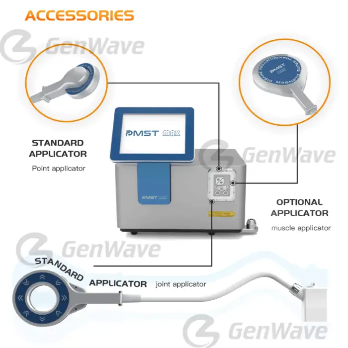 The Genwave PMST MAX is used for physiotherapy and pain relief, promoting faster recovery, and addressing chronic conditions. It is ideal for both clinical and personal wellness settings.
