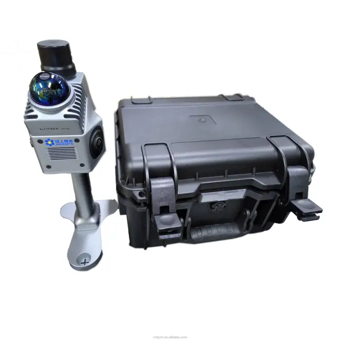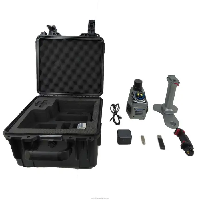 The scanner captures detailed 3D data, which can be used for various applications such as mapping and surveying.