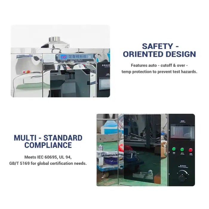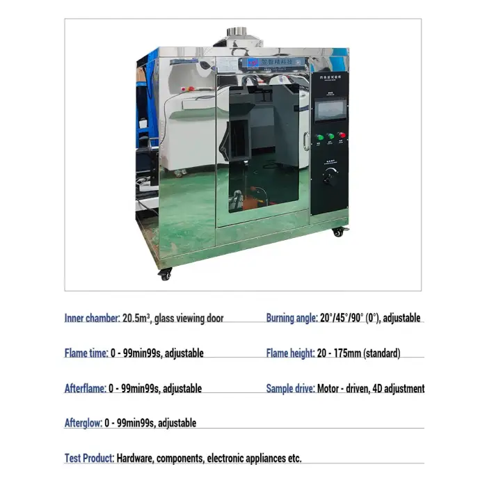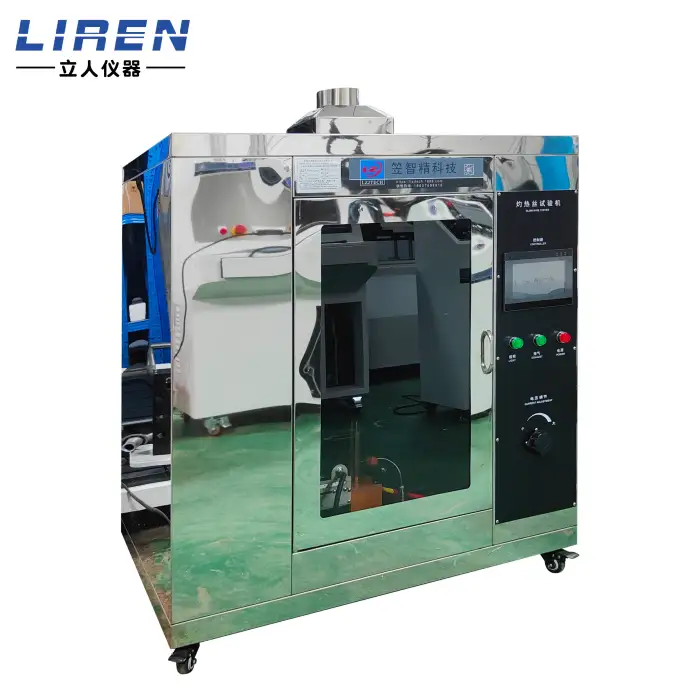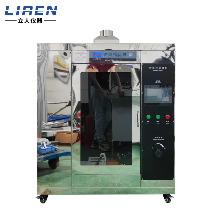 The Glow Wire Tester can perform horizontal and vertical burning tests on various materials to evaluate their flammability.