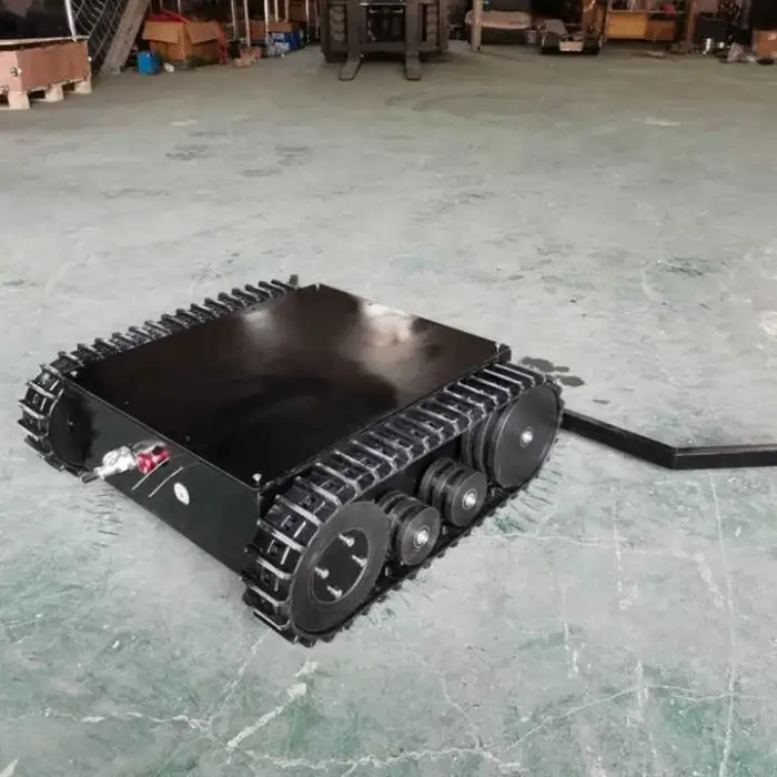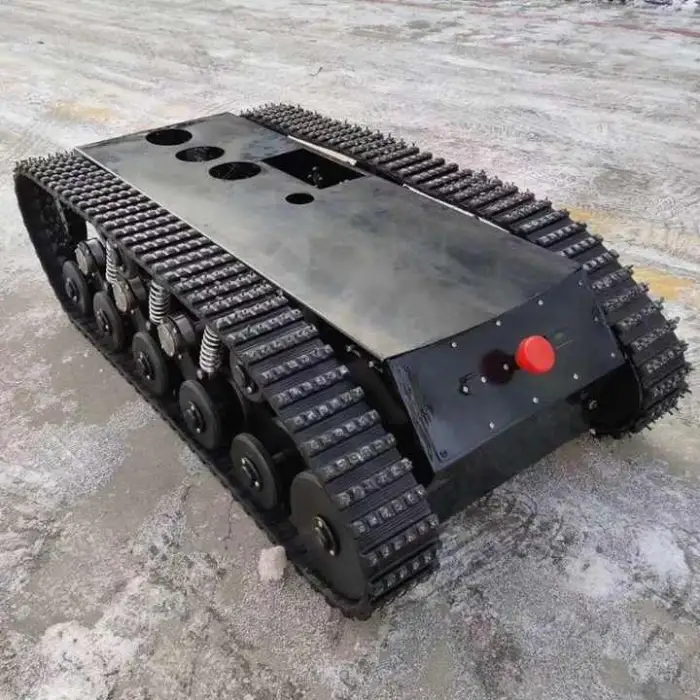 The durable rubber track chassis provides smooth operation and allows the machine to navigate various terrains effectively.