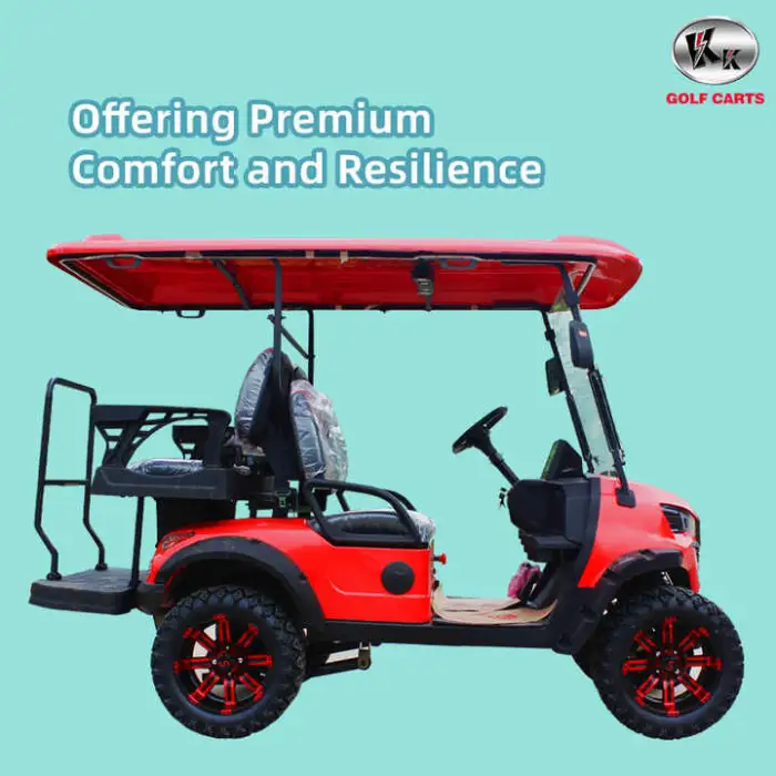 The golf cart is equipped with 23*10-14 vacuum tires mounted on aluminum wheels.