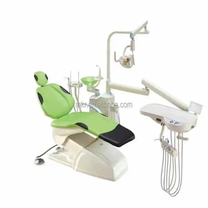 The dental chair is made from high-quality metal, plastic, steel, and leather materials.