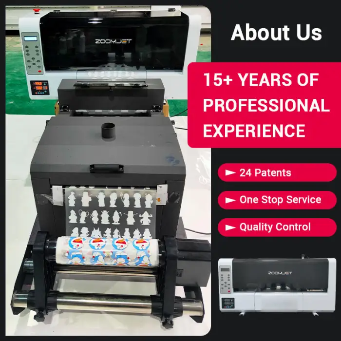 The printer uses DTF (Direct to Film) ink, which is suitable for high-quality garment printing.