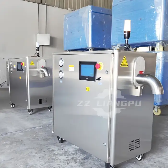 The machine is suitable for food preservation, medical and laboratory uses, special effects in film, cleaning applications, and event planning.