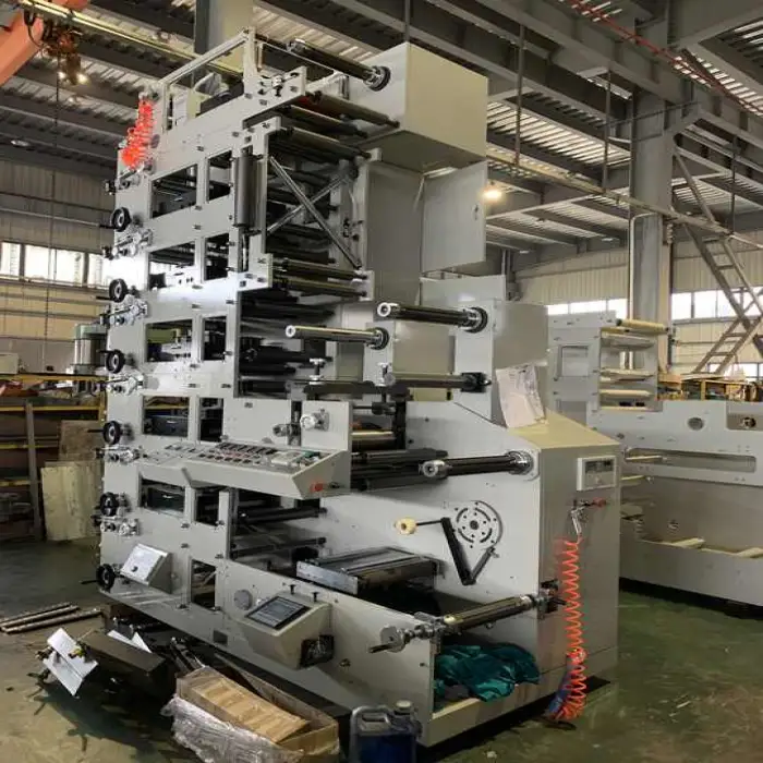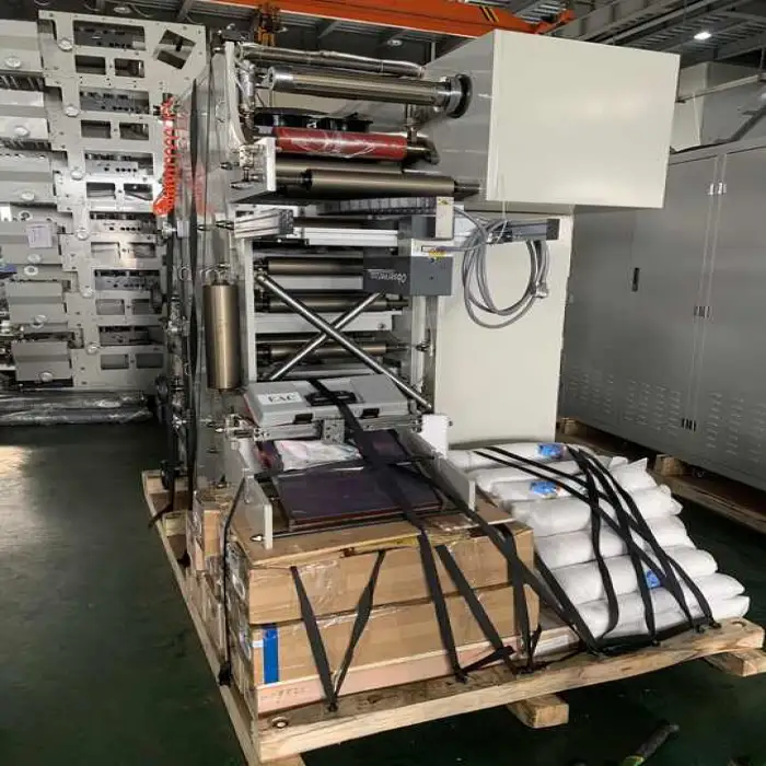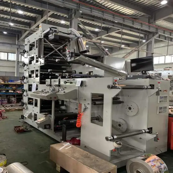 The press is built for multi-color registration control typical of flexo equipment. Achieving optimal registration and color consistency requires proper plate mounting, anilox selection, ink control and operator setup. Discuss available registration aids or inline controls with the supplier.