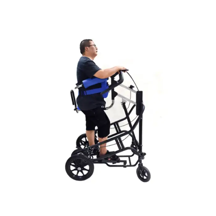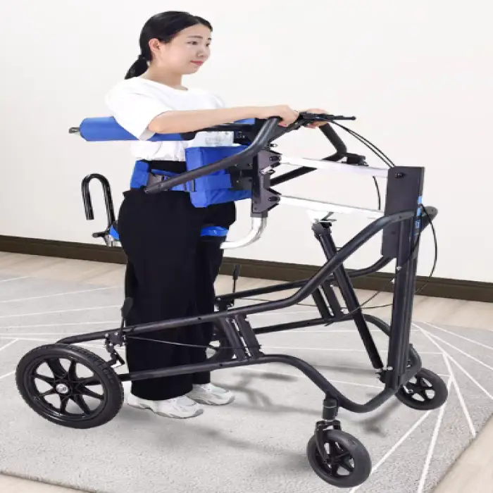 The GT02 Adjustable Standing Gait Trainer is designed to assist patients with stroke hemiplegia, paraplegia, and lower limb paralysis, helping to improve mobility and encourage independence while walking.