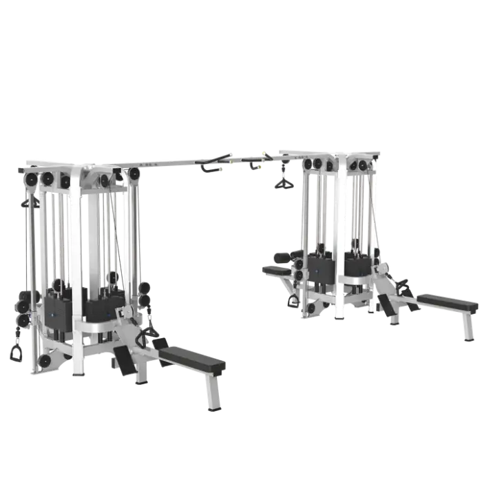 The Gym Crossover Cable Jungle features 8 workout stations for diverse exercises.