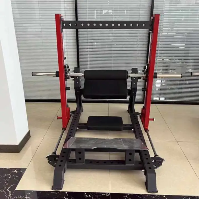 The Hip Thrust Machine features a durable design made from high-quality materials, ensuring long-lasting use.
