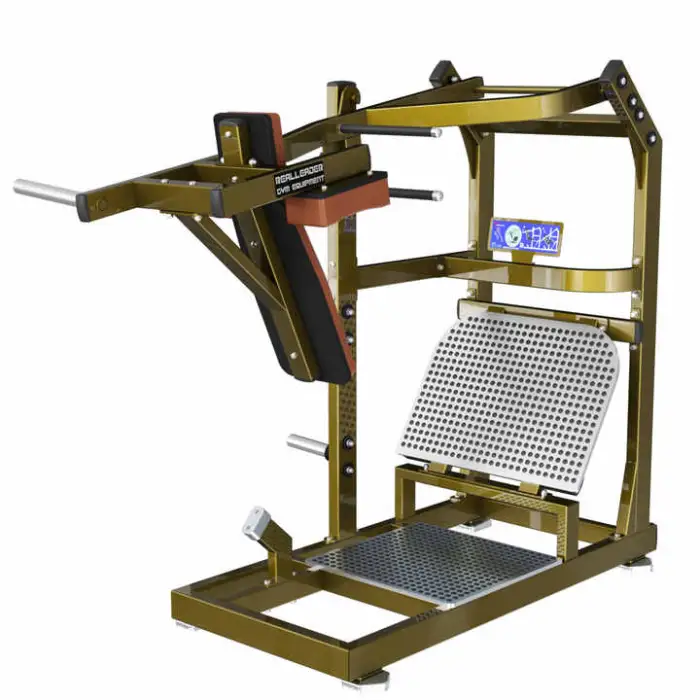The Gym Machine Fitness Leg and Gluteus Pendulum Squat has a robust construction designed to handle a significant amount of weight, ensuring safety and stability during workouts.