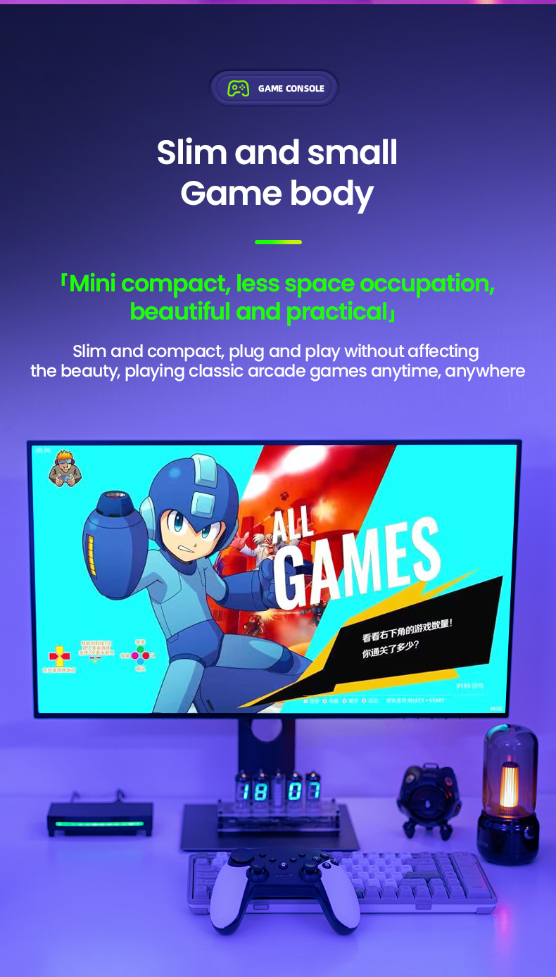 The 64GB model comes with over 9,000 built-in games, while the 128GB model includes more than 26,000 built-in games spanning many classic platforms.