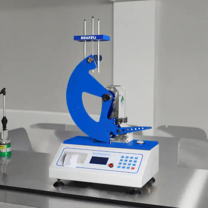 This machine is designed for testing the tearing strength of paper and fabric, making it suitable for various industries.
