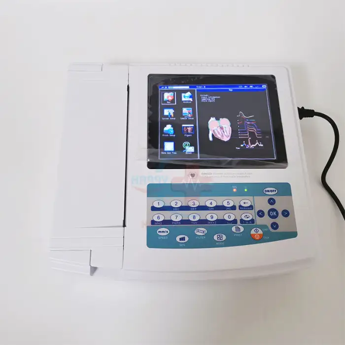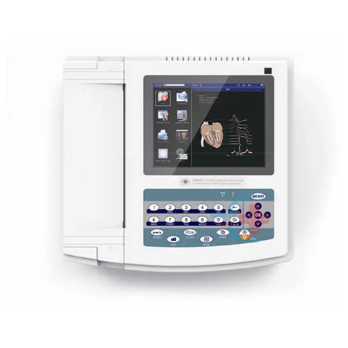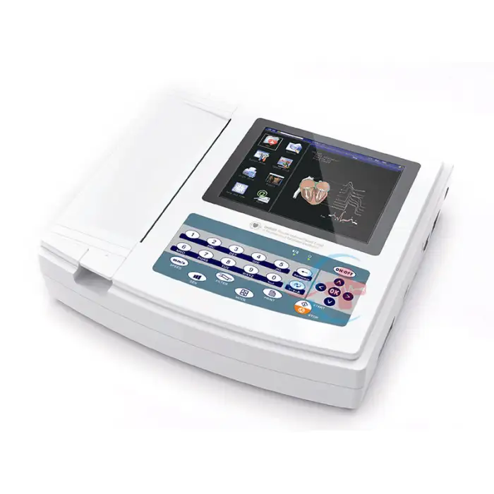 The HC-H004B ECG Machine features a 10-inch color touchscreen with a resolution of 1024x600.