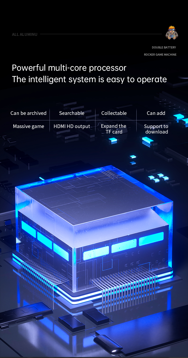 The console includes 15,000+ built-in games covering platforms and formats such as CPS, PS1, N64, MAME, NDS, DC, FC, GB, GBA, GBC, MD, SFC, Atari, SNES and NES, among others.
