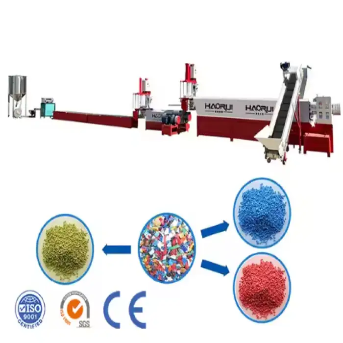 This machine can process various types of plastics including HDPE, LDPE, PP, ABS, and PVC.