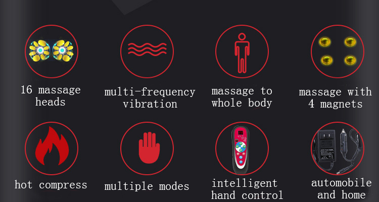 The Multi-function Body Massager is designed to provide soothing relief for discomfort caused by long periods of sitting, targeting areas like the neck, shoulders, back, waist, legs, and calves.