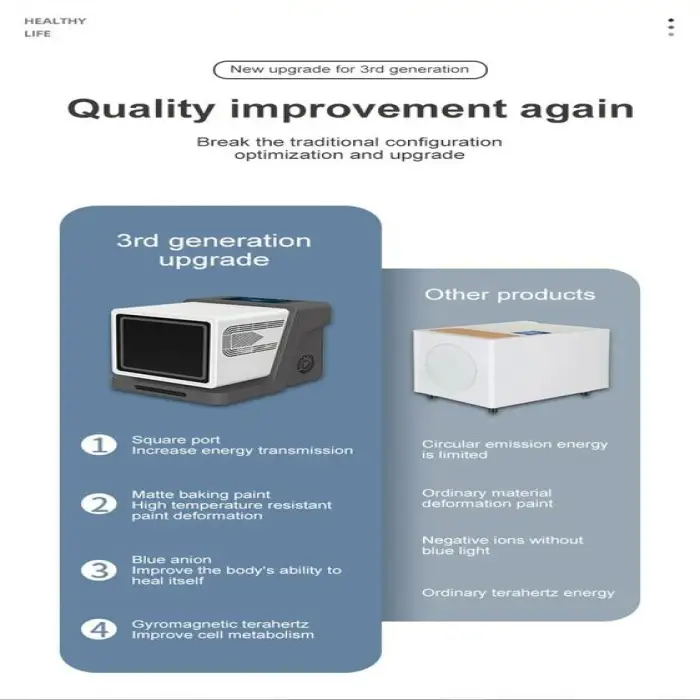The Health Care Massage Physiotherapy Machine, also known as the Terahertz Ion Cell Energy Instrument, is a device designed to provide effective and relaxing physiotherapy treatments using terahertz therapy waves.