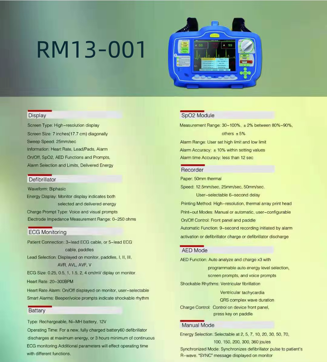 The Heart Pacemaker for Emergency AED Machine Defibrillator Machine is a device designed to assist in emergency situations involving sudden cardiac events. It provides defibrillation and monitoring for patients experiencing cardiac distress.