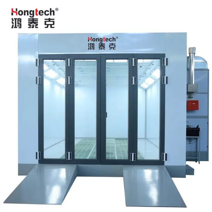 The booth is equipped with reliable double-intake centrifugal fans to ensure proper ventilation and air circulation during the painting process.