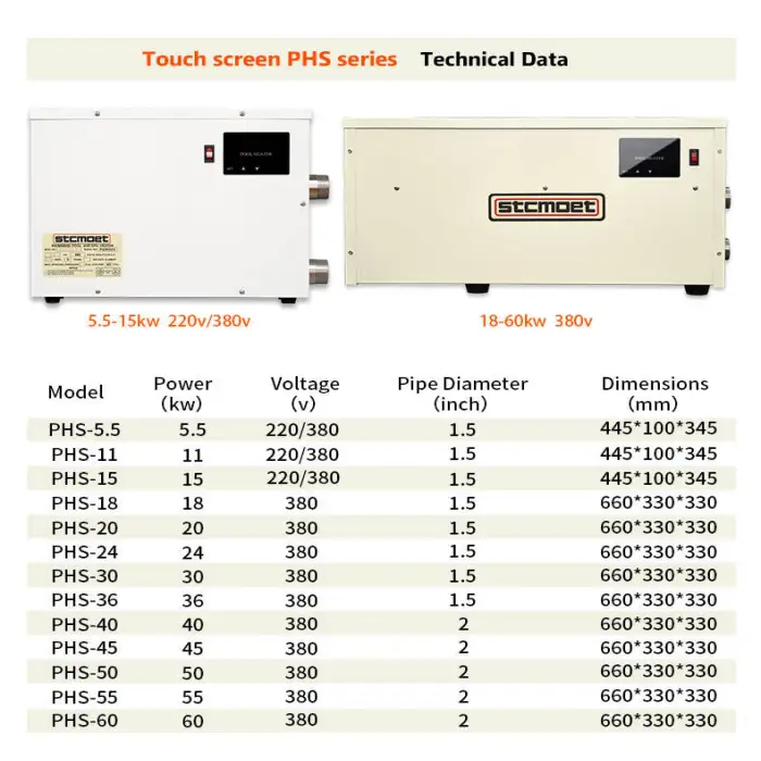 The Heating System Pool Heater offers a power range from 5.5kW to 60kW, allowing it to meet various heating needs for different pool sizes.