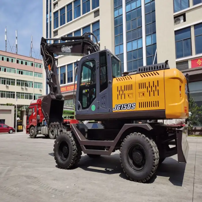 This excavator is suitable for excavating foundations, digging trenches, landscaping, heavy lifting, and road construction.