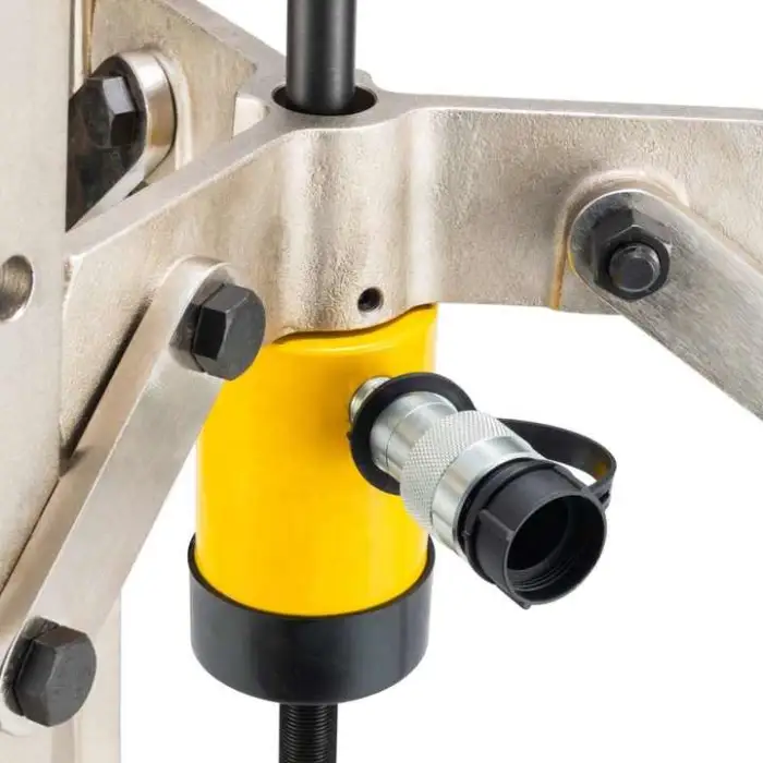 The set comes in a sturdy plywood case for safe storage and transport, along with the hydraulic gear puller itself.