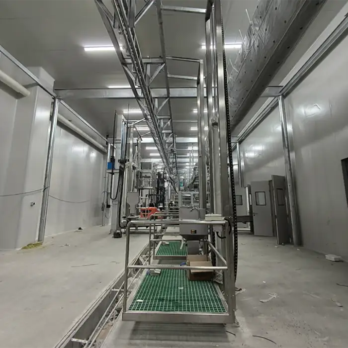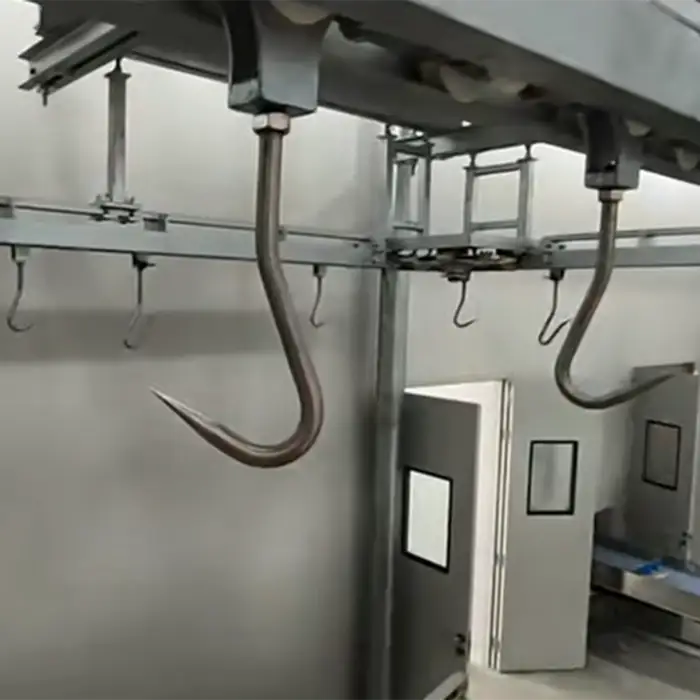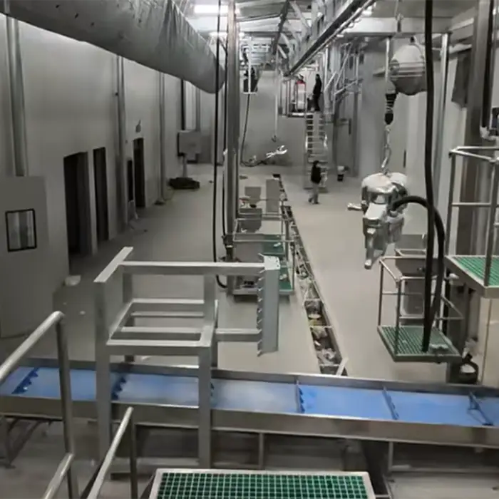 The core components include a bearing, motor, and gear, which are essential for the operation of the slaughtering line.