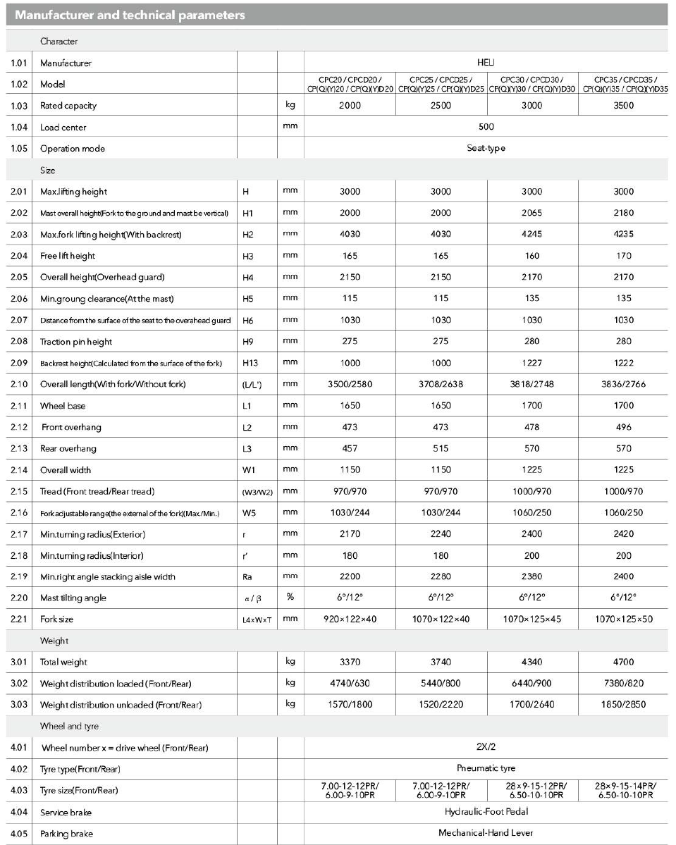 The HELI Diesel Forklift Model CPC (D) 50 has a lifting capacity of 5 tons.