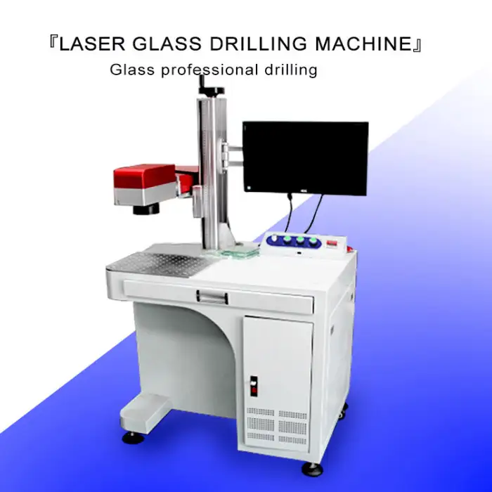 The primary function of this machine is to perform high-precision glass cutting and drilling using advanced fiber laser technology.