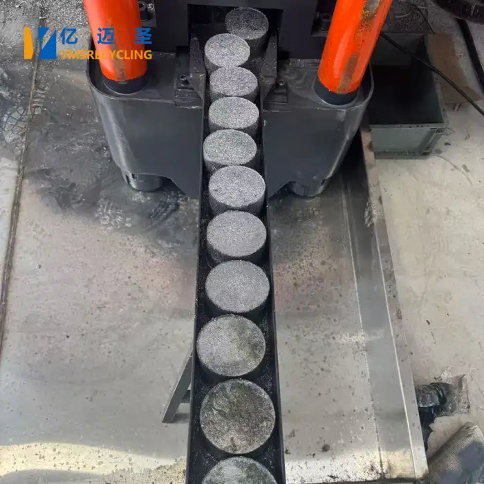The machine produces round briquettes.