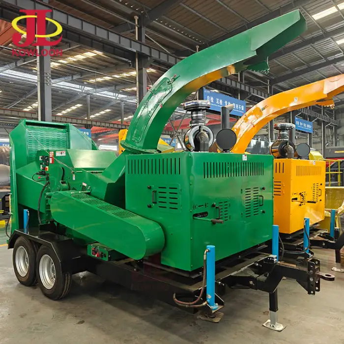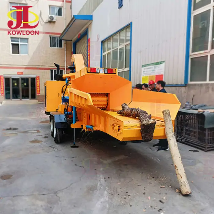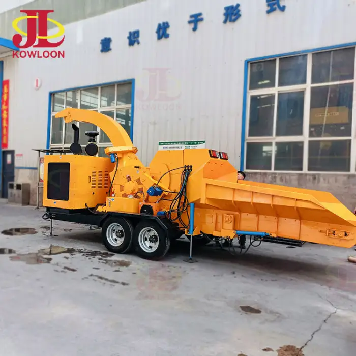 The High Efficiency Diesel Engine Wood Grinder can handle various biomass materials, including whole trees, branches, and wood waste.