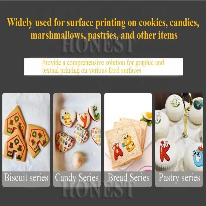The machine can print on cakes, breads, candies, chocolates, and other edible products.