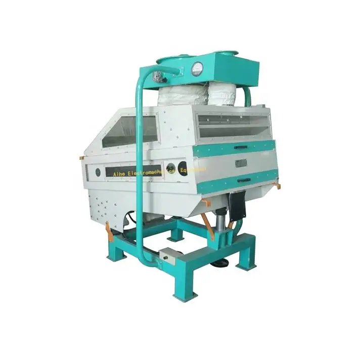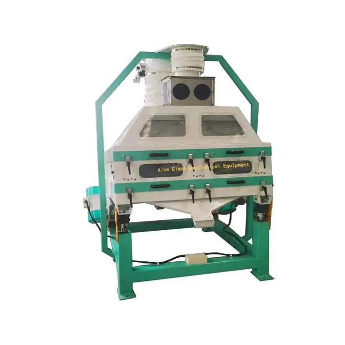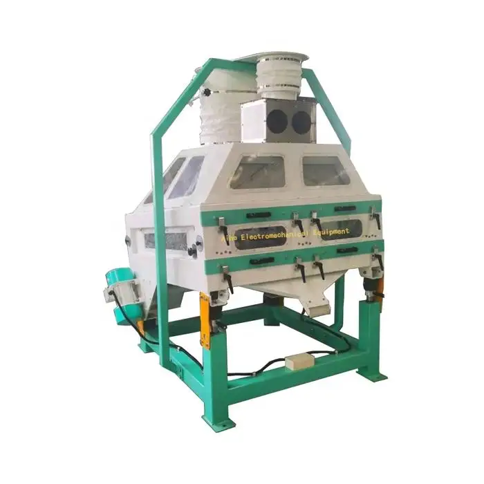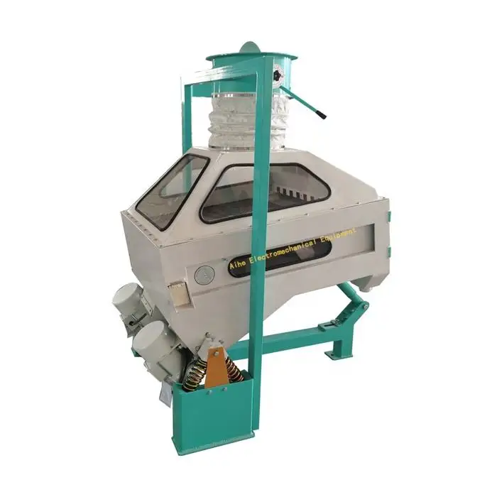 The machine effectively removes stones, sand, and other impurities from grains and seeds.