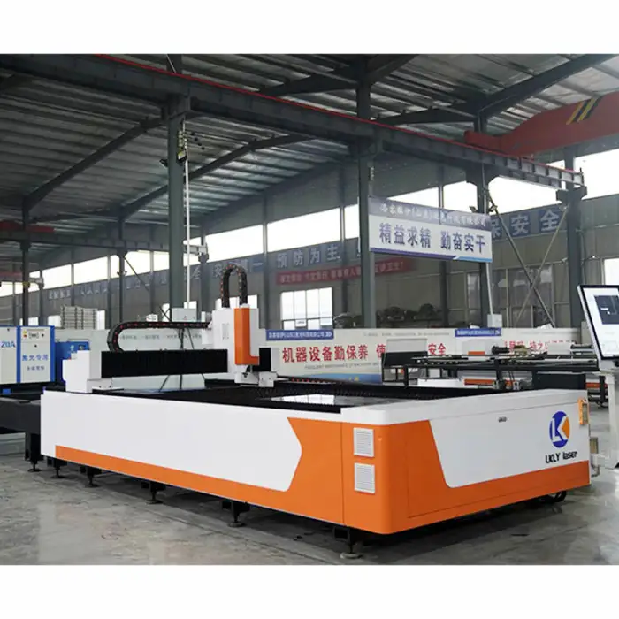 The machine utilizes a fiber laser for high precision cutting.