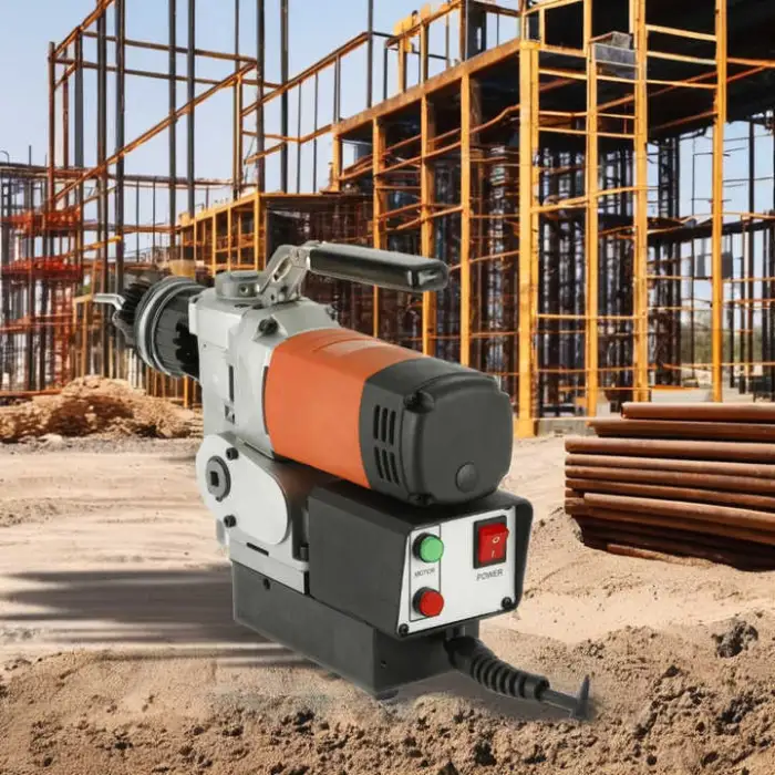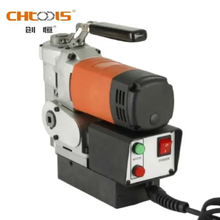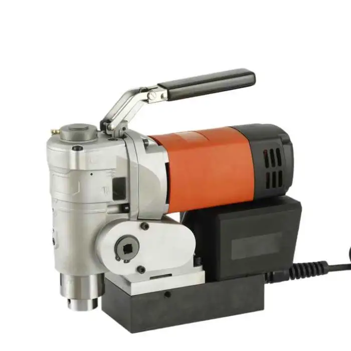 The drill press features a strong magnetic suction of 9000 N.