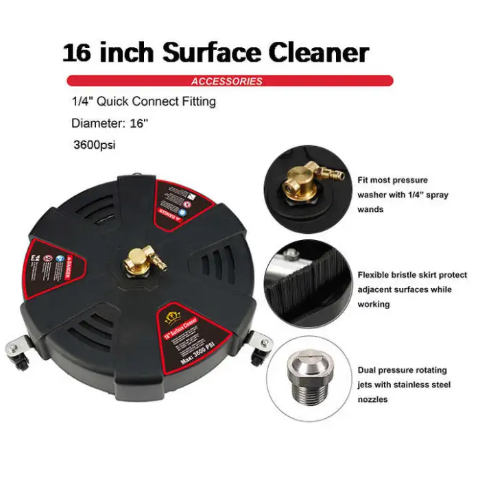 The High Pressure Washer Floor Surface Cleaner has a maximum pressure of 2500 PSI, making it highly effective for tough cleaning tasks.