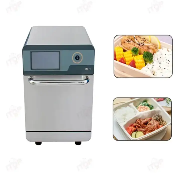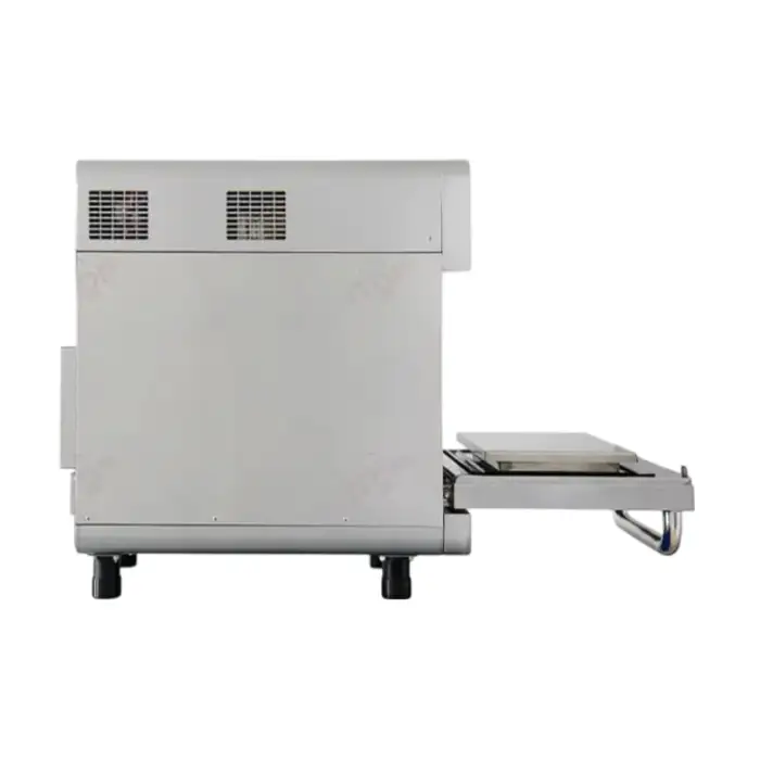 This combi oven cooks food up to 10x faster for the 20L model and 20x faster for the 17L model compared to traditional ovens, thanks to the combination of microwave and convection technologies.