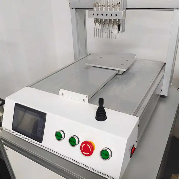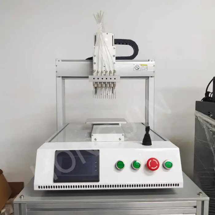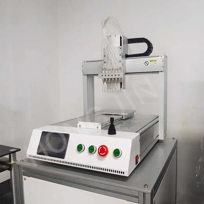 The machine operates with a moving speed of 300 mm/sec for the X-axis and 500 mm/sec for the Y and Z axes, ensuring quick filling.