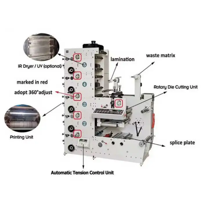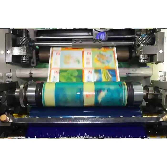 Typical maintenance includes regular cleaning of anilox rollers and print cylinders, lubrication of moving parts, periodic inspection and replacement of consumables (doctor blades, bearings), and calibration of registration systems. Follow the manufacturer's maintenance schedule for best results.